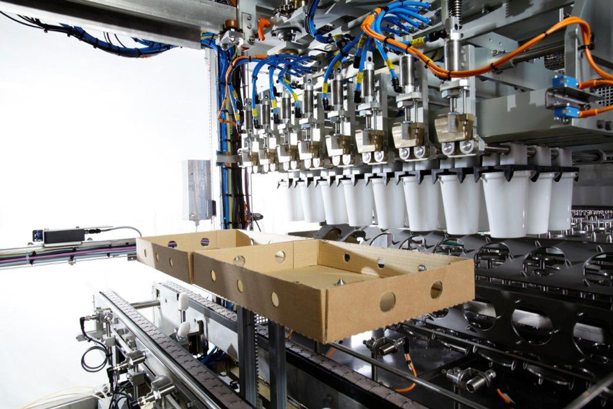 Ob freistehend oder direkt auf Ihre Füllmaschine aufgebaut – unsere Einpacklösungen passen sich exakt Ihren Anforderungen an. Servoangetrieben oder mit modernster Robotertechnik ausgestattet, entwickeln wir für Sie maßgeschneiderte Anlagen, die höchste Effizienz und Flexibilität vereinen. Für variable Packungsgrößen und flexible Packanordnungen bieten wir intelligente Systeme, die je nach Anwendung mit servoangetriebenen Achsen oder leistungsstarken Mehrachs-Robotern arbeiten. Unterschiedliche sowie flexibel einsetzbare Greif- und Saugköpfe sorgen dabei für maximale Anpassungsfähigkeit im Prozess. Individuell konzipierte Gruppierstationen, kombiniert mit Dreh- und Wendeeinheiten, ermöglichen nahezu unbegrenzte Varianten an Produktzusammenstellungen – exakt abgestimmt auf Ihre Anforderungen. Egal ob Kartons, Kunststoffkästen, Trays oder Lochtrays: Unsere Anlagen meistern unterschiedlichste Verpackungsaufgaben zuverlässig und effizient – und richten sich kompromisslos nach Ihren Bedürfnissen.