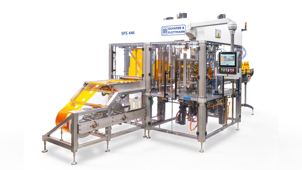Um Flaschen verschiedenen Formats und in Größen von 0,02l-Portionsfläschchen bis 2l-Flaschen adäquat einzuwickeln, bietet Schäfer & Flottmann vollautomatische Lösungen. Bereits seit den 1950er Jahren entwickeln wir als Verpackungsspezialist Maschinen für diesen Sonderbereich. Ob in edlem Seidenpapier, transparenter Folie oder authentisch griffigem Packpapier: eine eingeschlagene Flasche steht für Exklusivität. Viele namhafte Hersteller wickeln darum ihre Flaschen zusätzlich ein. Doch nicht immer dient das allein der verkaufswirksamen Präsentation, auch der Transport- oder Lichtschutz der Produkte kann im Vordergrund stehen. Die äußerst produktschonende Verarbeitung ist für uns ebenso selbstverständlich wie höchste Formatflexibilität und die schnelle und einfache Formatumstellung unserer Anlagen. Natürlich können unsere Maschinen nicht nur Flaschen einwickeln. Auch für konische bzw. zylindrische Formen, wie z.B. Zuckerhüte, haben wir bereits passende Lösungen entwickelt.