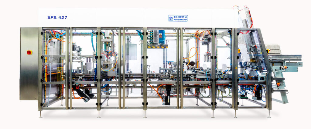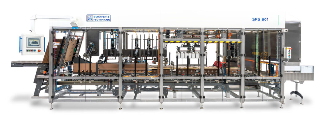 In gewachsenen Produktionsbetrieben zählt jeder Quadratmeter. Genau hier setzt der Kombipacker an: eine intelligente, platzsparende Lösung, die Tray- bzw. Kartonaufrichter und leistungsstarken Einpacker in einer einzigen, hocheffizienten Einheit vereint. Durch die nahtlose Integration beider Funktionen entfallen lange Förderstrecken – für deutlich mehr Betriebssicherheit, weniger Störanfälligkeit und einen optimierten Materialfluss. Der Prozess ist perfekt aufeinander abgestimmt: Zunächst wird das Tray oder der Boden des Wraparoundkartons vollständig aufgerichtet. Die Faltung der Zuschnitte erfolgt dabei um ein entsprechendes Faltwerkzeug und ist somit unabhängig von Einflüssen der Primärverpackung. Anschließend erfolgt das präzise, produktschonende Einsetzen der Ware in das bereitgestellte Gebinde. Je nach Leistungsanforderung geschieht dies flexibel über ein modernes Pick-and-Place-System oder abgestimmter Produkt-Handlingssystems. Neben ihrer kompakten Bauweise überzeugen die Kombipacker vor allem durch ihre außergewöhnliche Formatflexibilität. Unterschiedliche Produkte und Verpackungsformate lassen sich schnell und unkompliziert umstellen – für maximale Effizienz bei wechselnden Anforderungen.
