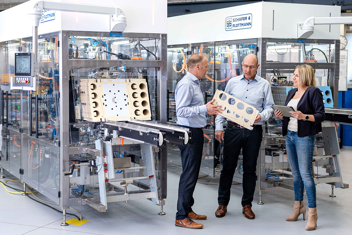 Von französischem Champagner bis zur neuseeländischen Butter: Seit über 75 Jahren entwickeln und fertigen wir innovative Verpackungsmaschinen und Automationslösungen für Kunden weltweit. Das Leistungsspektrum bildet die Aufgabenstellungen in der Sekundärverpackung mit Schwerpunkt Kartonverarbeitung ab. Unsere Maschinen kommen vorrangig in der Lebensmittel- und Getränkeindustrie zum Einsatz, aber auch in vielen Non-Food-Bereichen. Als Familienunternehmen setzt Schäfer & Flottmann auf flache Hierarchien und kurze Entscheidungswege. Auch darum haben uns weltweit viele bedeutende und namhafte Hersteller ihr Vertrauen geschenkt und damit beauftragt, Ihre Verpackungsprozesse zu automatisieren. Hohe Flexibilität, ein breites Leistungsspektrum und Hochleistungen sind das Ergebnis jahrzehntelanger, innovativer Entwicklungs- und Konstruktionsarbeit. Ob als einzelne Verpackungsanlage oder als komplexe, individuell ausgelegte Verpackungslinie – wir erarbeiten für Sie die passende Lösung. Dank des modularen Aufbaus unserer Maschinen können Sie sich auf eine zukunftssichere Anlage mit neuester Technologie verlassen. So entwickeln wir nicht einfach Maschinen, sondern packende Lösungen für Ihre Herausforderung.